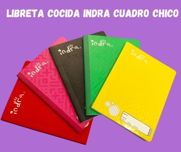 LIBRETA COSIDA PROFESIONAL INDRA, 100 HOJAS, CUADROS CHICOS, PASTA DURA LISA. COLORES SE MANDAN AL AZAR.